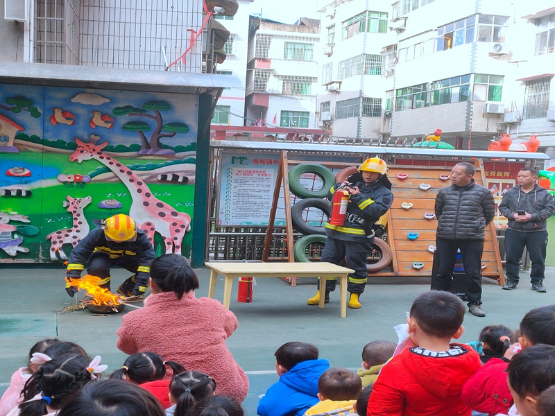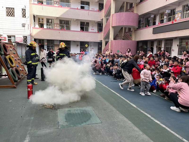 本网讯 “各位老师、小朋友们,一楼起火了,请大家赶快撤离!”在全国消防日来临之际,梅城镇中心幼儿园传出了紧急的警报声,一场消防安全疏散演练活动就此拉开了序幕。 每个小朋友手拿湿毛巾捂住口鼻、低着头、弯着腰、井然有序地跟着班级教师迅速撤离到安全地带,各班教师及时维持秩序,并清点人数,上报幼儿园安全总指挥夏春龙,整个过程用时3分25秒,真正做到了快速、安全、有序。 随后安化梅城消防站指战员为幼儿园全体师生认真讲解了如何拨打119火警电话、如何正确逃生等消防安全基本常识,重点讲解、示范了灭火器的使用方法,现场试用并指导大家如何正确使用灭火器,教师蒋育宜当场进行了操作。事后,孩子们怀着无比崇拜的心情围着消防员叔叔问这问那”叔叔,你身上的腰带是干什么的?”“你身上的装备里有些什么?”“叔叔,你的手怎么这么大?”还有的小朋友说长大了也要当消防员。整个过程互动气氛热烈。 通过本次消防安全演练活动,有效提高了师生的消防意识和逃生技能,使幼儿在演习活动中掌握了具体的逃生技巧,使教师掌握了在突发事件中的快速应变能力,真正把消防安全工作落到了实处。(通讯员 刘红芳)