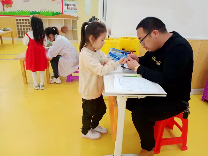 本网讯 10月9日,梅城镇公卫办的医护工作人员来该园的中大班幼儿进行免费体检。本次体检主要是对幼儿的身高、体重、视力、血红蛋白等方面进行常规检查,这些都是幼儿生长发育的主要指标。 体检时,各班老师带领幼儿排队有序地进行各项检查,检查中,老师用鼓励表扬的方式给幼儿营造一个轻松的氛围。医护人员也非常友爱,一边鼓励幼儿,一边细心地给孩子们做检查,孩子们也很有礼貌地谢谢工作人员,所有的检查都井然有序,体检结束后,工作人员对幼儿的各项指标进行了综合评价,再由各班老师及时向家长反馈幼儿本次的检查结果。(通讯员 李瑞丰)