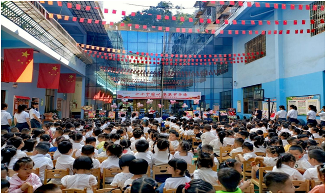 本网讯 9月29日,安化县启稚幼儿园·林家村园全体师幼在林家村开展了“小小中国心、浓浓中华情”主题活动,以此为祖国母亲72华诞献礼。 此次主题活动有幸邀请了6位来自安化县消防救援大队的消防战士。在活动中,消防战士进行了庄重而又肃穆的升国旗仪式,当雄壮的国歌响起,鲜艳的五星红旗冉冉升起,全体师幼内心无不涌动起对党和国家的热爱之情,孩子们近距离地感受了升旗仪式的神圣与庄严。通过聆听邓文员对五星红旗的讲解,孩子们感受到了五星红旗背后的使命感。教师、幼儿用舞蹈、诗歌等形式为祖国母亲庆生,表达了对祖国美好未来的憧憬与祝福。 这场小小的主题活动的背后,是安化县启稚幼儿园党支部几个日夜的努力,支部相信通过此次主题活动,浓浓的爱国情会像一股暖流,流淌在党员、教师、幼儿、家长的心中。(通讯员:曾丽 黄翠)