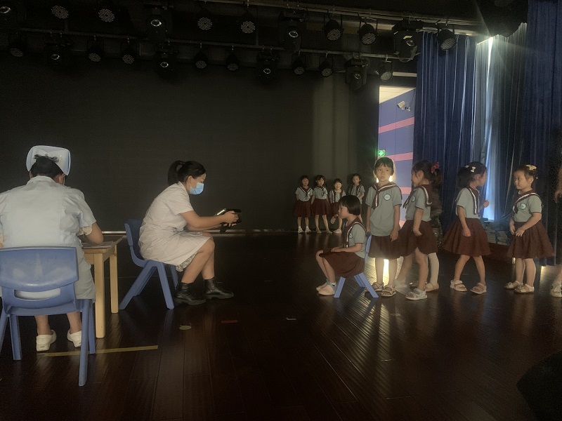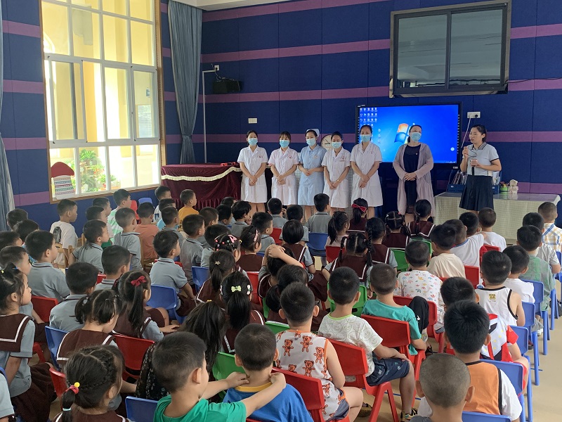 本网讯 9月15日上午,安化县中心幼儿园结合社区情境体验活动的开展迎来了一群神秘的客人——县妇幼保健院医护人员,