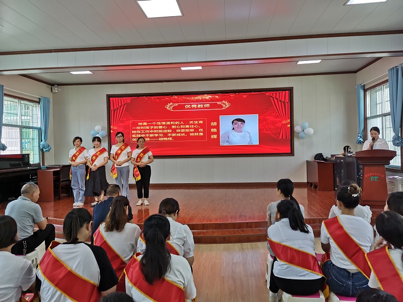 本网讯 金风送欢笑,丹桂花飘香,9月10日 ,梅城镇中心幼儿园迎来了第37个教师节。 早上六点四十分,在园长晏丽妆的带领下,行政管理人员站成一排,为陆续到园的老师们送上一句亲切的问候。 下午一点,优秀教师表彰大会在四楼多媒体室举行,全园有十六位老师获得“优秀教师”荣誉称号,有六个班级被评为“优秀班级”。中心学校副校长谭良玉对全体老师致以节日的问候,他和老师们分享了快乐生活快乐工作的三点认识:快乐源于自己,应该以职业为荣、以学生为荣、以同事为荣、以单位为荣;快乐来自人心,要争做人人叫好称赞的老师;快乐要建立在岗位,我们的价值是其他行业无可比拟的,做每个孩子的筑梦人和引路人,他期待老师们能在梅幼绽放新彩。