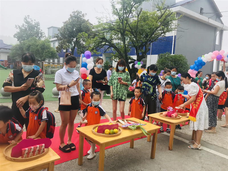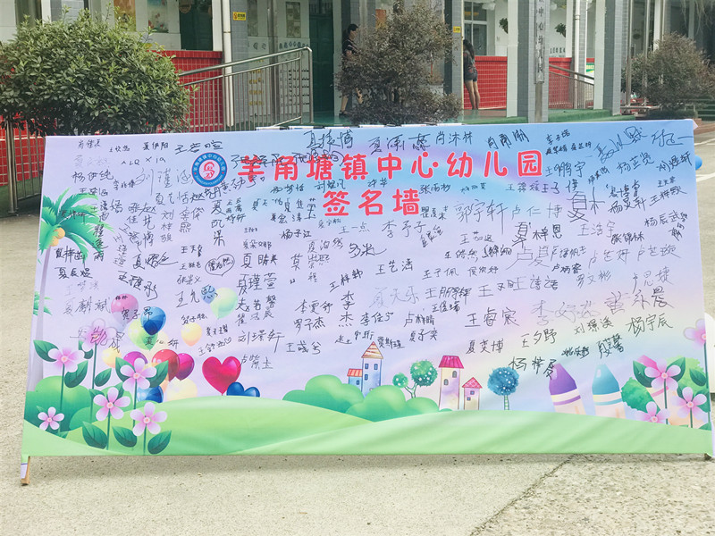 本网讯 9月3日,羊角塘镇中心幼儿园举行了以“灿烂开学季,最美成长礼”为主题的新学期入园仪式。 清晨,进入羊角塘镇中心幼儿园以鲜红的地毯、着装整洁的礼仪小天使及老师们的精心制作作为成长大门,一家三口大手牵小手走过红地毯、穿过成长门,幼儿在家长的指引下依次抚摸吉祥物,不同的物品代表不同的意义,敲敲小鼓“一鼓作气”;摸摸苹果“平平安安”;摸摸大葱“聪明伶俐”;摸摸棒棒糖“身体棒棒棒”等。随后孩子们纷纷拿起画笔在签名墙上留下成长的印记。最后还设置了各种各样的打卡造型背景墙留下开学第一天合影。让家长、幼儿从踏入园所就能感受到新学期、新气象、满满的仪式感。 据悉,羊角塘镇中心幼儿园在抓好疫情防控的同时,也不忘给小朋友制造惊喜,让小朋友们在欢乐声中度过美好的开学第一天。并且全体教师的辛勤付出,赢得了广大家长的高度赞誉。