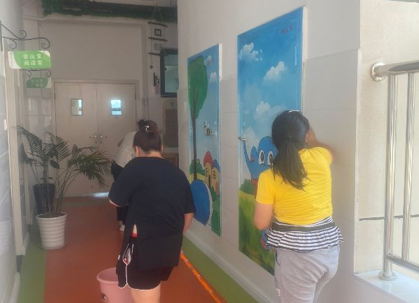 本网讯 8月29日下午龙塘乡茶乡花海幼儿园全体教职工开展了全园卫生大扫除工作。老师们认真仔细、不放过任何一个角落,严格按照卫生消毒管理的标准规范操作,对幼儿园活动室、公共区域、厨房、户外操场、大型玩具等各个角落进行全面而细致地清洁与消毒,对设施设备、楼梯进行了全面细致的安全隐患大排查。