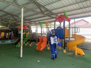 本网讯 为全面做好新冠肺炎疫情防控工作,保障全园教师和幼儿的身体健康和生命安全,为全体师幼营造一个健康和谐的生活、学习环境,冷市镇中心幼儿园全体教师早早就开始来园进行大扫除,除了做好每天的开窗通风,紫外线消毒,常规物品消毒外,8月29日特邀请来蓝天救援队的专业人员对幼儿园开展全方位专业防疫环境消杀,扎实做好疾病防控工作。 四名专业消杀人员对校园内的走廊、教室、活动室、游乐场等场地的地面及墙面进行全方位消杀,尤其是对门把手、楼梯扶手、公厕等公共部位进行重点消杀作业,不留死角、不留盲区。 通过此次清洁消杀活动,有效防止了各种病菌滋生的机会,为幼儿的健康成长提供有力的保障。我园将持之以恒、清洁环境,为创建美好幼儿园而努力。(通讯员 吴娉婷 贺莹 周亮秋)