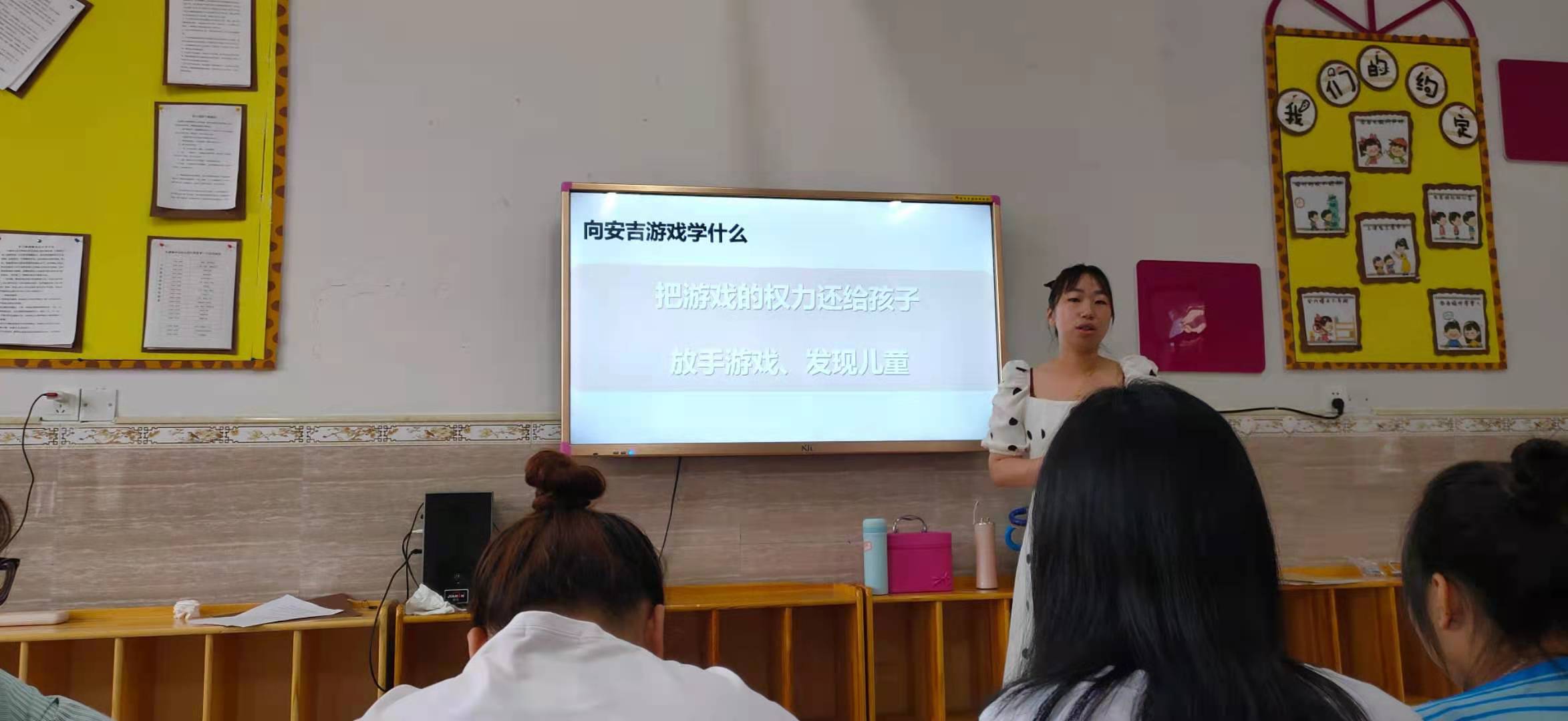 本网讯 8月26日,长塘镇中心幼儿园金娇园长组织全体教师开展了以《从“安吉游戏”到“安化游戏”》为主题的安吉游戏培训活动。园长金娇以“爱、投入、冒险、喜悦、反思”这五个关键词为切入点向老师们解读了安吉游戏的核心精神和基本理念,接着从安吉游戏的发展历程,结合图片、引用案例,图文并茂地解说了安吉游戏的特点。安吉游戏开放自主的空间、动态多变的材料让孩子真正自主、自由、自发、快乐的游戏得到了教师们的一致认可。 通过本次的培训学习,我们将继续把游戏精神落实到教学实践当中,挖掘游戏资源,培养幼儿兴趣,让孩子在自主探究和自由游戏中得到经验,不断成长,让游戏点亮孩子的生命!(通讯员 姚娟)