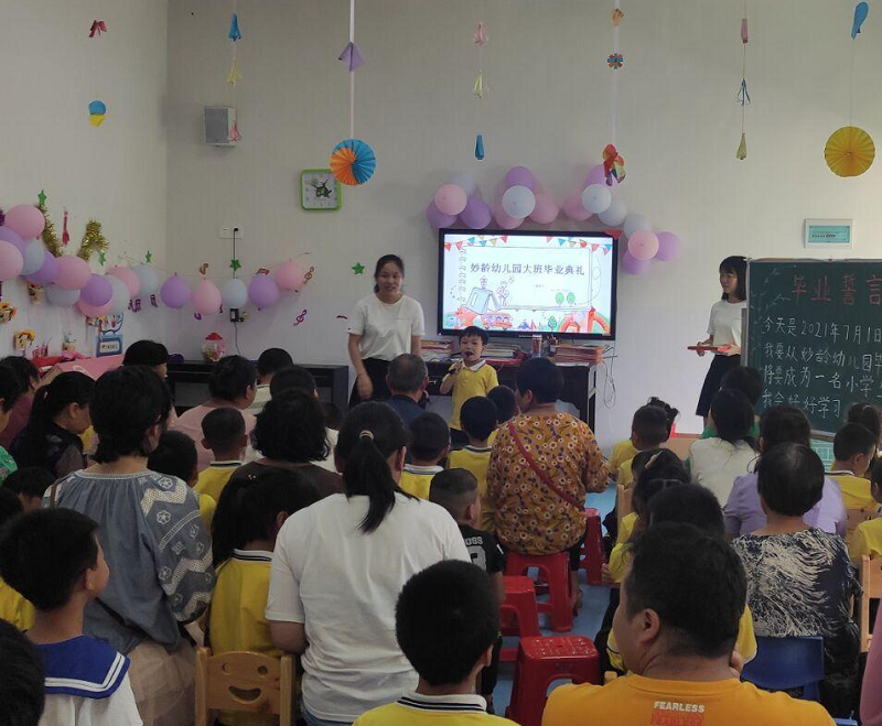 本网讯 7月2日上午渠江镇妙龄幼儿园举行了“放飞梦想,快乐起航”的大班毕业典礼。 首先,大班班主任满含深情地回顾了孩子们三年的成长,并对孩子们提出殷切的期望,送上美好的祝福。接着家长代表夏鹏同志、王学龙同志向幼儿园辛勤工作的老师们表示衷心的感谢,并给孩子们送上期许和祝愿。美食分享环节,孩子们品尝到老师亲手制作的纸杯蛋糕,家长们则是品尝由孩子们亲手制作的擂茶、辣毛豆。大班孩子们个个上台宣读自己的毕业誓言励志好好学习、天天向上。活动中园长李格梅和家长们一起探讨“怎样帮孩子顺利地从幼儿园过渡到小学”。最后孩子们通过触摸吉祥物,承载着老师满满的爱与祝福向幼儿园挥手告别。毕业典礼也落下了帷幕,为孩子们幼儿园的生活画上了完美的句号。 亲爱的孩子们,请带着老师真心的祝福、深切的期望,放飞梦想,快乐起航,在广阔的天地中自由翱翔。(通讯员 夏胜丹)