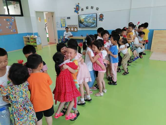 哥哥姐姐们就要毕业了,带着对幼儿园的不舍,为弟弟妹妹们做了一朵大红花,祝福弟弟妹妹们在幼儿园里健康快乐长大!弟弟妹妹们用拥抱祝福哥哥姐姐们在新的学校展翅飞翔,早日戴上红领巾来看我们,幼儿园是你们永远的家!