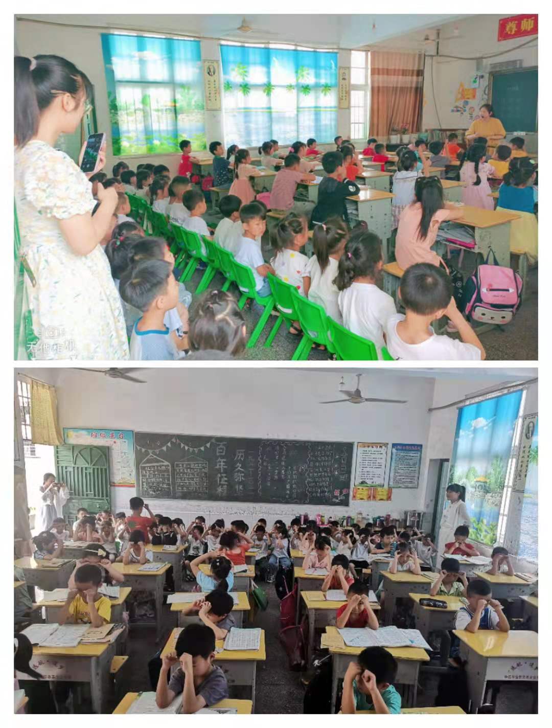9:20~10:20进入课堂观摩一年级哥哥姐姐们上课并和他们一起做眼保健操。