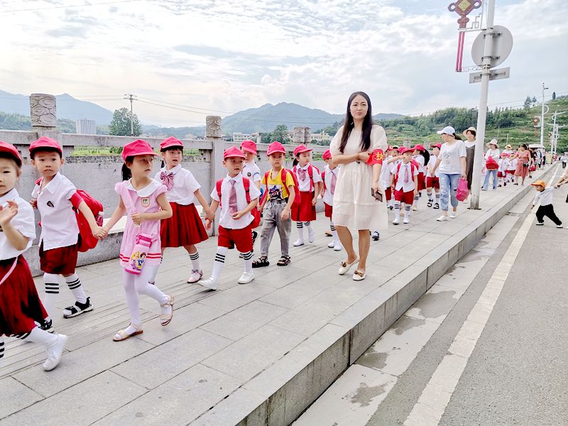 本网讯 为了让大班幼儿感知和体验即将踏上的小学生活,激发幼儿对小学生活及学习的憧憬与向往,6月21日上午,梅城镇中心幼儿园组织全体大班幼儿到梅城镇完小进行了实地参观,陪同的还有该园全体行政、行管人员、医护人员及大班家长志愿者。 上午8:50分,5个大班的幼儿排着整齐的队伍准时出发,只见他们个个神采奕奕,开心极了。