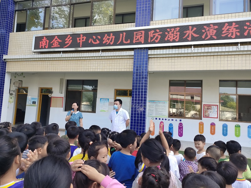 本网讯 6月8日上午,南金乡中心幼儿园举行了防溺水安全演练活动。 该园教师首先利用晨间活动时间对幼儿进行防溺水安全教育,并通过“幼儿结伴私自下水玩耍不幸溺水”的情景剧和现场互动,教导幼儿当发现他人溺水时,不能擅自施救,要大声呼救,找大人帮忙。卫生院医务人员对学校老师、幼儿进行心肺复苏等急救知识与技能培训。 通过本次防溺水安全演练,该园师生对防溺水安全都有了更多、更深的认识,此种教育方式也更易使幼儿加深印象,真正达到防溺水教育的目标,提高了幼儿的防溺水安全意识,使幼儿们“预防溺水”牢记心间,筑牢防溺水“安全墙”。(通讯员 龚娉)