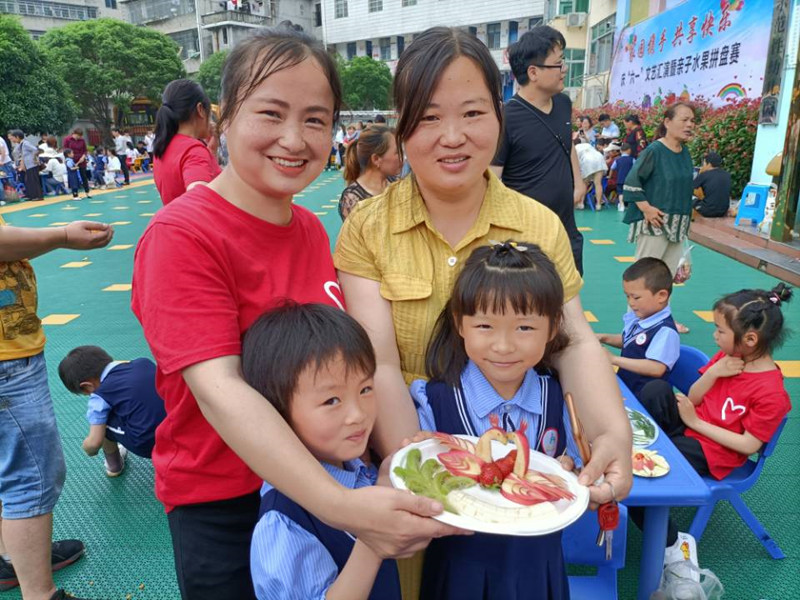 本网讯 闻着五月的花香,踏着六月的节拍,迎来了孩子们最快乐、最隆重的节日——“六一”国际儿童节。乐安镇中心幼儿园于2021年6月1日上午,举行了“家园携手 共享快乐”为主题的庆“六一”文艺汇演暨亲子水果拼盘活动。 在美妙的音乐声中,主持人上场,拉开了本次活动的帷幕。乐安镇中心幼儿园园长李雪琴、家长代表等,纷纷给孩子们送去了节日的祝福。 伴着激昂的乐曲,小朋友们迈着整齐的步伐,喊着响亮的口号,勇敢、自信地走来,一张张可爱的笑脸,阳光般的绽放。入场后小朋友和老师们一同开启快乐大课间活动,他们个个精神抖擞,喜笑颜开。 接着是家长文艺汇演活动,平时的“六一”是孩子表演节目给家长欣赏,今年的“六一”与众不同,是家长表演节目给孩子看。这次汇演共有9个题材多样,内容丰富的节目。家长们精彩的表演,一次又一次地将现场的气氛推向高潮,赢得了现场观众的阵阵掌声。 最后,期待已久的亲子制作水果拼盘比赛,大家开始大展身手,互相商量、分工合作,共同完成属于自己的水果拼盘作品,作品风格各异,各具特色。家长和孩子们专注、认真、开心的表现,组成一幅幅令人感动的亲子同乐温馨画面。 这次活动,让幼儿在参与中和同伴、和爸爸妈妈、爷爷奶奶共享六一的快乐,共同度过了一个幸福、难忘的“六一”儿童节,同时也加强了家园之间的沟通与联系。