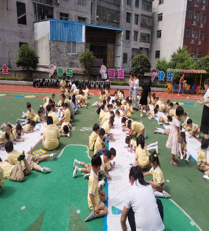 本网讯 5月31日上午,龙塘乡中心幼儿园迎来了快乐六一周——“我和祖国共成长”百米长卷主题绘画活动,307名幼儿在老师的带领下,在百米长卷上,孩子们发挥想象力与创造力,你画一笔,我添一色,画出自己心中最美的景色,经过1个多小时的认真描绘,色彩斑斓的百米画卷正式完成了。