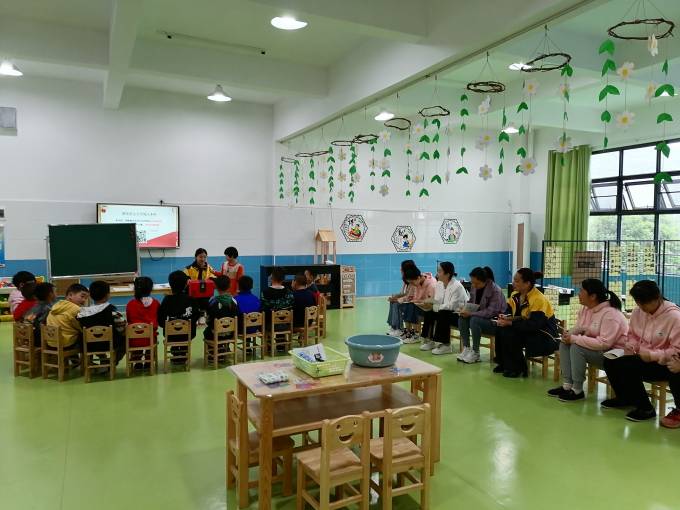 本网讯 5月19日,江南镇中心幼儿园、思游完小幼儿园集聚龙塘乡茶乡花海幼儿园参观交流,旨在建立园所之间相互学习、交流经验、教育探讨、分享经验等。 上午9点,在该园园长石娜的陪同下,参观了幼儿园的大环境建设、硬件设施、区角环境创设后,对幼儿园的各类户外玩教具及园区环境规划、区角创设表现出浓厚的兴趣和由衷的赞赏,不经驻足拍照记录。 随后,由江南镇中心幼儿园廖斌老师带来了精彩的科学教学活动《沉浮》,师幼精彩的表现让听课的老师们啧啧称赞。教师们进行了现场研讨,大家在碰撞中寻求平衡,在对话中产生共鸣! 最后,江南镇中心幼儿园园长廖迎娅对全体教师进行了“为萌娃们的幼小衔接做好科学护航”培训讲座。从幼儿的区域活动、环境创设、教学活动、户外活动、就餐、午睡、等环节结合案例和实例进行了具体的讲解和规范。 此次园际间交流活动,架起幼教同行间相互交流的桥梁,形成相互学习,共同进步的良好氛围。在交流中成长,在分享中提升,真正感受到了“园际交流”的魅力,达到了互学互研共同发展的目的。(通讯员 石娜)