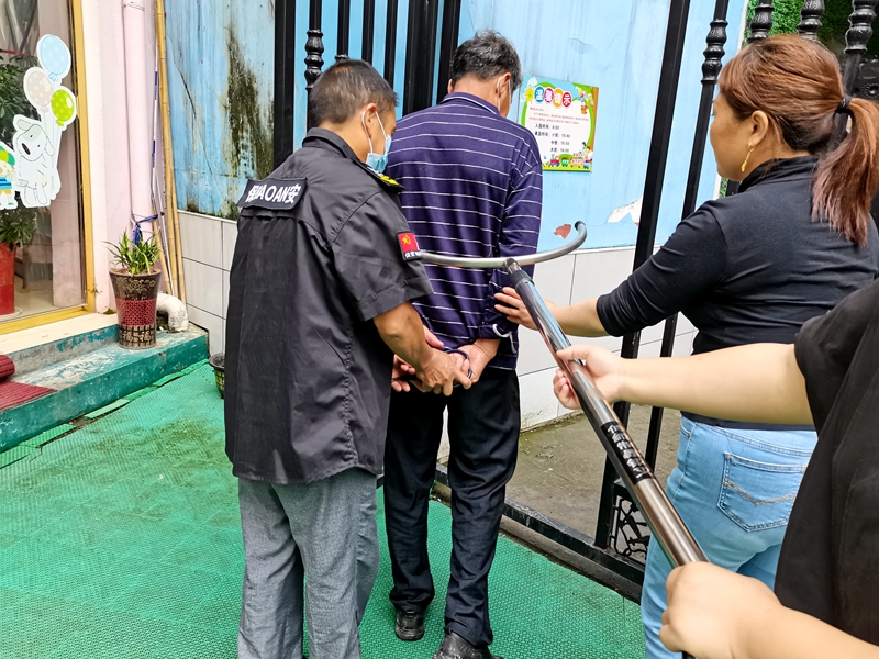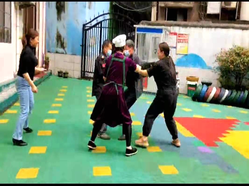 本网讯 5月13日上午该园进行“反恐防暴 安全守护”应急疏散演练。小朋友在做操时,一位志愿者扮演“歹徒”带着凶器向小朋友扑来,这时引起了全园师生的高度重视,保安人员立刻应对,园长拉响报警器,教师有组织的带领学生马上撤离现场,从操场的南端走向二楼教学楼,把学生带入安全区,关好门窗。并向小朋友讲述在遇到坏人时的方法及措施,让小朋友们掌握基本的自我保护方法。同时保安、教师、及教职工利用钢叉、防暴盾、警棍等防暴工具。在短短5分钟内就制服了“歹徒”,赶出了校门。 演练前,我园安全领导小组分工明确,严密部署,制定了演练方案。教师通过故事、情景表演等给小朋友讲解了反恐防暴方面的知识。演练后,园长对这次 “反恐防暴安全守护”的演练进行了总结,同时提高了师幼应急逃生的能力,也表扬了安保人员、教职工临危不惧、敢于博斗的无畏精神。