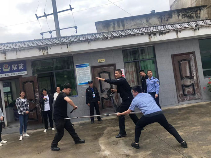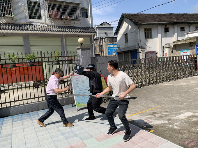 本网讯 5月8日上午,平口镇中心幼儿园进行了反恐防暴安全应急演练活动。 该园组织全体安保人员开展技能素质提升培训,并通过实操对战训练进一步掌握安防装备的使用,提升应急处置突发事件的能力。 上午十点,演练正式开始。一名形迹可疑的男子来到该园,保安按照要求进行询问,该男子突然强行闯入,保安立即阻拦,并第一时间拉响警报。幼儿园迅速启动反恐防暴应急预案,保安立即手持防暴器械齐心协力设法将其围住,不让“歹徒”接近幼儿,使出浑身解数与其“搏斗”。