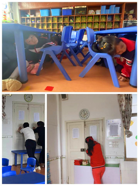 本网讯 5月7日下午三时,乐安镇中心幼儿园的孩子们正在户外开心做着游戏,突然,刺耳的警报声在园内响起,园长从办公室飞奔至操场,边跑边喊“启动防暴应急预案”。 一名男子手持凶器强行闯进幼儿园,幼儿园专职保安拉响警报器同时手持盾牌与叉迅速追进园内,边追用叉试图去控制“歹徒”,发生激烈的“争斗”。园内,园长立即关闭园内栅栏门并与安全专干护后,老师组织孩子撤回教学楼。并由厨房的两位师傅手持随手拿到的“器械”关闭把守教学楼大门。教师与保育员立马到达各个班级,紧闭门窗,用桌子、柜子顶住门。此时,“歹徒”已经翻过栅栏,并挟持了一个为护孩子撤离而落在最后的一位老师以威胁。保安、园长、专干及两位男教师也围住了“歹徒”,对恐暴分子进行劝说、交涉。一位保安乘歹徒分心时从后面死死抱住,其他人员一拥而上,夺下“歹徒”手持的凶器,最终顺利制服并将“歹徒”交给赶来的警察。 校园广播响起,园长告诉大家:刚才发是我们的反恐防暴安全演练。同时就怎样开展校园的反恐防暴做了做了简要的辅导宣讲。 为了确保演练的逼真与实效,训练老师们的临场应变能力,了解大家对防暴应急预案的熟悉度与执行力,特意没有做事先的提示安排。此次演练,该园师幼230余人以行动交上了一张圆满的答卷。通过此次反恐防暴演练与宣讲活动,既提高了幼儿的自我保护意识,又增强了教职员工的防暴意识与处理突发事件的应变能力。