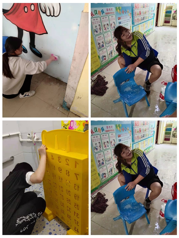 本网讯 全体教师以班集体的形式对幼儿园里里外外、上上下下、方方面面的环境进行了彻底的卫生打扫。瞧,各位老师们扫的扫、抹的抹、擦的擦、洗的洗、冲的冲,干劲非常足,大家对幼儿园各个角落仔细排查、认真打扫,争取做到不留死角、不留盲区。经过几个小时的"奋战",幼儿园焕然一新,呈现出一片整洁亮丽、活泼清新的新气象。