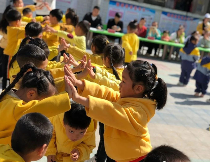 活动中,孩子们在老师的引导下,踏着整齐的步伐、喊着响亮的口号,展现了健康向上、团结进取的精神面貌!在活泼欢快的音乐中,和着音乐的节奏,认真地做着形式多样、规范的动作,都表现得十分投入!