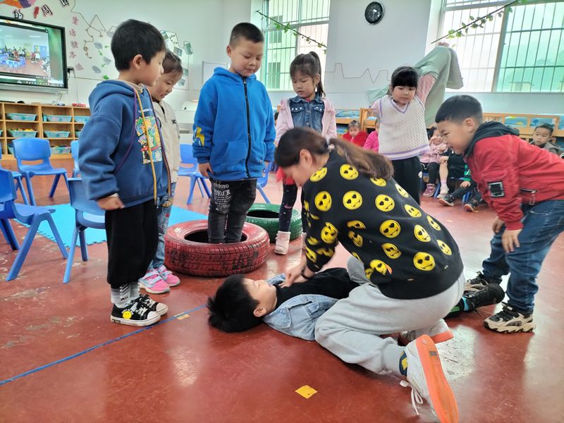 此次演练分四个环节。首先,安全老师进行了防溺水知识讲座,让幼儿对溺水的原因以及如何预防溺水有了全面的了解。接着模拟场景,指导幼儿进行求救、互救、自救的防溺水实践演练。同时老师还在演练现场讲解了对溺水人员上岸后的急救处理方法。最后老师指导幼儿开展对溺水者实施医疗急救的模拟演练。