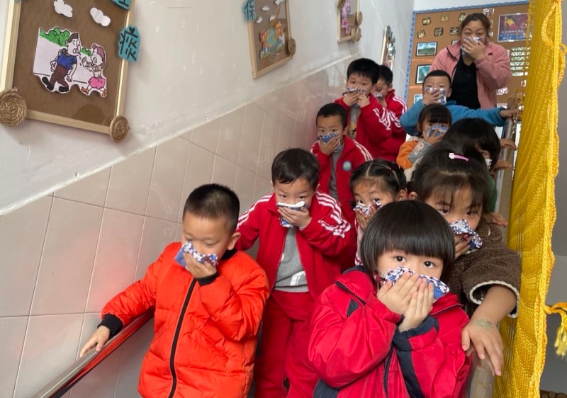 本网讯 幼儿的安全防范一直是幼儿园工作的重点,4月27日下午3点,东坪镇知多星幼儿园举行了消防应急疏散演习。当幼儿园浓烟四起,警报信号响起时,各班教师依据规定的疏散路线带领幼儿用湿毛巾捂住口鼻、弯下身体,冷静、快速、有序地下楼疏散到了操场,整个演习只用了2分钟。