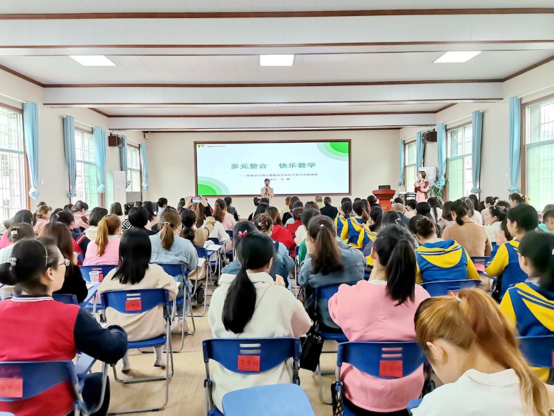 本网讯 4月23日上午,安化县学前教育第一区域新教材研训活动在梅城镇中心幼儿园举行,安化县教育局学前教育股刘定中股长、陈小宜主任、第一区域乡镇中心学校幼教分管领导、园长及150多名骨干教师参加了本次研训活动。 活动在梅城镇中心幼儿园园长晏丽妆热情洋溢的致词下拉开了帷幕,首先,参加活动的教师走进班级观摩了小、大班主题区域活动,孩子在区域中的大胆表现得到了领导及教师们的高度赞扬;随后,该园副园长付蓉就《多元整合幼儿园教育活动资源包》教材进行了培训,从多个角度解析了幼儿园主题教育活动的开展与实施,让教师们对教材和实践有了进一步的理解;其次,陈小宜主任就“课程游戏化探索与思考”做了专业阐述,强调教师要以幼儿为本,让孩子在游戏中探索、学习和发展;接着,刘定中股长做专家引领,他从三个观点对幼教人提出了新的要求,强调教师要加强学习,努力提高自身素质,做有内涵的幼教人;最后,梅城镇中心学校副校长蒋松林进行活动总结,对整个活动给予了充分的肯定,并对后续活动的开展寄予了厚望。 此次研训形式多样,内容丰富,不仅促进了幼儿教师的专业成长,同时也增强了园级教师之间的交流,让研训之花芬芳每一所幼儿园。(通讯员 曹仲英 谢莹蓉)