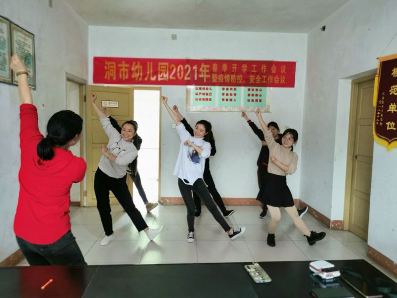 本网讯 近日,洞市幼儿园放学后组织全园教师进行了幼儿舞蹈、民族舞等舞蹈专业技能培训。 培训中,该园教师黄敏辉采取从完整带练到重点示范、从关注全体到个别纠正等方式进行指导。参加培训的老师们更是认真听,反复练,欢快跳,脸上始终洋溢着快乐的笑容,深深感受着舞蹈带来的快乐,美妙的体形尽显教师的青春活力和积极向上的精神面貌。 老师们纷纷感言,这次培训,舞蹈水平得到了提高,解决了在教学实践中常见的一些问题,真正让老师们学有所获,学有所用。该园园长将在培训总结时表示,还将继续开展类似的培训,让老师们个个都能歌善舞,让“教学”尽情绽放!(通讯员 黄敏辉)