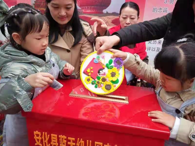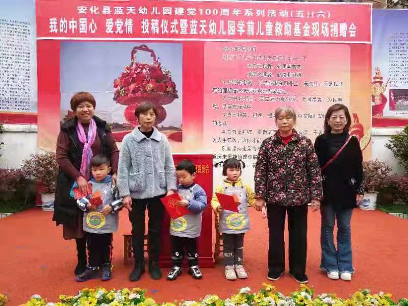 本网讯 4月6日上午九点半,“我的中国心、爱国情”作品投放箱“首投”仪式暨学前儿童救助基金现场捐赠仪式在蓝天幼儿园后操坪隆重举行,冒着毛毛细雨,幼儿园党支部、园务、教师、数百名家长以及全体幼儿参与了仪式,活动在全体幼儿的“拱手礼”中拉开了序幕。 首先,书记陈中林宣读了活动指导思想,陈中林说道:“为我园困难家庭送上爱心物资,让他们感受到党和政府以及社会各界对他们的关爱和牵挂。小小的捐赠承载着社会各界的爱心,相信在大家的关爱和帮助下,他们一定能树立信心,不断地战胜生活中的各种困难。”接着,来自北师大的刘霞老师介绍了学前儿童救助基金近几年来开展幼教扶贫的情况与现场捐赠活动的基本情况,总结道:幼儿园自2014年开始实施幼教扶贫计划,辐射安化9个乡镇,送教下乡、捐赠现金达39万元,26年来,共计免费入托11名贫困幼儿(包括孤儿)。跟着,由支部园务、党员、教师、家长和小朋友依次进行了现场捐赠,最后是“我的中国心、爱国情”作品投放,老师和幼儿将自己动手制作的手操报和美术作品放入作品箱里,为我们强盛的祖国送去祝福,活动在美妙的音乐声中结束。在新的一年春天来临之际,所有人爱心汇聚,温暖人心,寄寓着美好的生活祝愿。(通讯员 刘霞)