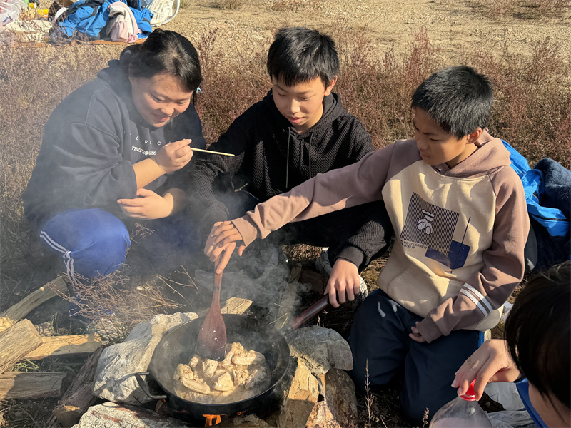 本网讯 11月28日上午,梅城镇东华中学全体师生迎着冬日暖阳,背着各式炊具、提着丰富食材,以“田野美食家”为主题的野炊活动出发岩溪村,在大自然的怀抱中体验劳动的乐趣。 出发前,政教主任陈勋、副校长肖智集合重申了活动纪律与协作要求,特别强调了安全注意事项。学生们有序抵达野炊指定区域后,各小组迅速行动起来。有的同学仔细清洗提前切配好的青菜、肉片;有的忙碌着在远离草木的地方清理出防火区域,搭建灶台,并小心翼翼地用打火机点燃柴火;还有同学铺好餐布、摆放碗筷,分工明确又默契十足。热心的家长们与启安社区的村干部也积极参与其中,协助老师维持秩序、指导学生安全用火。灶台渐渐升起袅袅炊烟,“滋滋”的炒菜声、安化擂茶的飘香、浓烈的烧烤气味、此起彼伏的欢声笑语交织成趣。同学们不仅专注本组任务,更主动跨组帮忙,递调料、看火候,互助氛围温暖人心。 随着菜肴陆续出锅,学生们围坐一起分享劳动成果。你为我夹一块软烂的排骨,我提醒你“光盘行动”,在朴素的行动中尽显同窗情谊。餐后,大家自觉整理场地,将垃圾分类打包,让自然恢复原有的宁静与和谐。 活动在满满的收获中步入尾声。岩溪的炊烟虽已散去,但劳动的喜悦、协作的温暖和实践的启迪,已深深印在每个参与者的心中。一位七年级学生笑着感叹:“虽然菜有点糊,但吃起来特别香!”这堂走出教室的“劳动实践课”,真正让教育在田野间生根发芽,绽放出绚丽的花朵。 初审初校:曹靖阳 复审复校:肖智 终审终校:李兴家