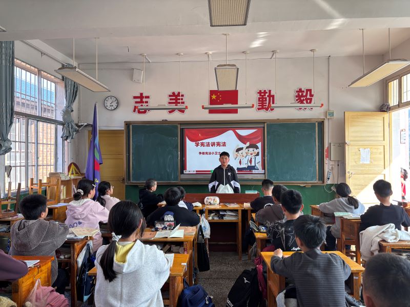 本网讯 12月4日,烟溪镇新开完小开展国家宪法日主题教育活动。 清晨,全校师生在升旗仪式后齐声诵读宪法条款,庄严的晨读声响彻校园。各班级随后举行主题班会,通过动画、案例讨论等生动形式,让同学们理解宪法与生活的联系。校园内宣传展板与电子标语营造出浓厚法治氛围。 “这次活动让我明白了宪法并不是遥不可及的,它就像空气和水一样,时刻保护着我们。”五年级的学生刘鑫宇在活动后说。老师们也纷纷表示,将把宪法教育有机融入日常教学,持续引导孩子们将法治精神内化于心、外化于行。 烟溪镇新开完小将以此次活动为契机,持续深化法治校园建设,让宪法精神在校园里落地生根,让尊法学法守法用法成为全体师生的自觉行动,为培养担当民族复兴大任的时代新人筑牢法治根基。 初审初校:欧阳娜 复审复校:黄维平 终审终校:彭巍