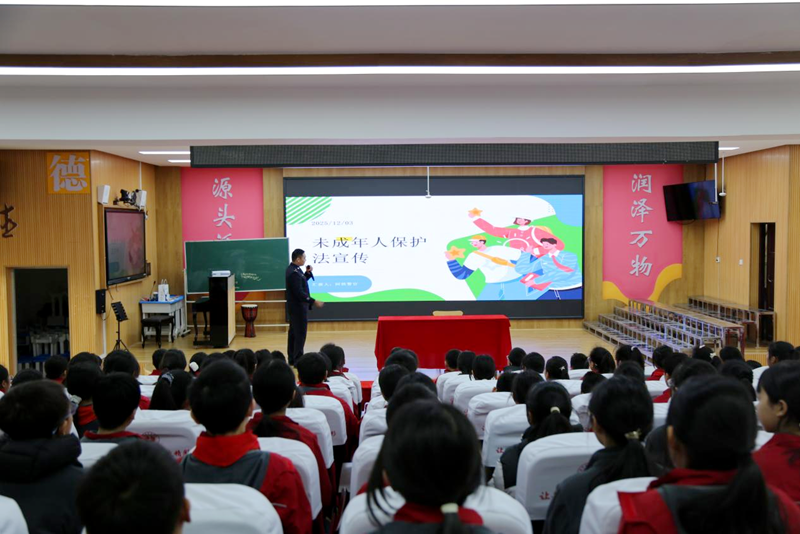 本网讯 12月3日,一场深入童心、形式生动的法治教育活动在梅城镇芙蓉学校如火如荼地展开。学校政教处精准把握青少年法治教育关键节点,以“12·4”宪法宣传日为契机,结合学校德育工作的开展与落实,利用第六节课组织全校各班级统一开展了以“学宪法讲宪法,争做宪法小卫士”为主题的特色班队活动。 活动亮点聚焦于六年级专场,学校法治副校长、梅城镇派出所警官杨佳轶作题为《以法为盾,守护未来》的《中华人民共和国未成年人保护法》深度解读讲座。此次讲座巧妙摒弃了单向灌输,转而采用“案例探秘”的新颖形式。杨佳轶从“法律如何回应成长的烦恼”出发,重点围绕校园安全、家庭关系、网络安全等与学生息息相关的场景,借助真实案例剖析,生动阐释“六大保护”体系如何构筑起未成年人成长的立体防护网。他特别引导孩子们识别身边的“隐形保护”,并化身“小小法治观察员”,在问答互动中深刻理解“受保护”与“守规则”的共生关系,让法治精神从书本条款内化为现实生活中的有效做法。 初审初校:谭媛媛 复审复校:俞泽军 终审终校:彭海鹏