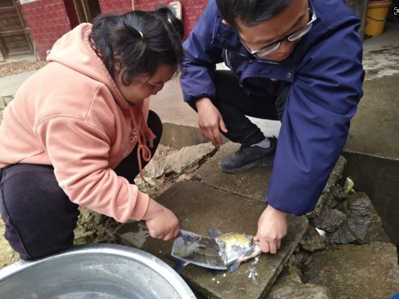 本网讯 12月8日,清塘铺镇中学送教老师吴景霞、周青趁着冬日暖阳,把课堂搬到了特殊孩子家门口的院落,以“鱼”为媒,开展了一堂生动的实课。 画面里,老师耐心陪伴,与孩子一同观察鱼的形态、探索鱼的结构,甚至在老师的指导下,孩子尝试参与处理鱼的过程。这不是普通的生物学课,而是为特殊孩子量身定制的生活技能与认知启蒙课。送教老师用这种贴近生活的教学方式,让孩子在触摸鱼鳞、观察鱼鳃的过程中,感知生命的细节,学习生活的本领。 每一次俯身指导,每一次手把手教学,都传递着教育的温度。送教上门,送的不仅是知识,更是对特殊孩子成长的关怀。在这堂关于“鱼”的课程里,孩子的好奇心被激发,认知在拓展,生活技能在提升,他们在属于自己的节奏里,同样享受着学习与成长的快乐,也让我们看到,教育的光芒可以照亮每一个角落,温暖每一个需要关怀的心灵。 初审初校:陈艳梅 复审复校:吴丹 终审终校:刘丽莉