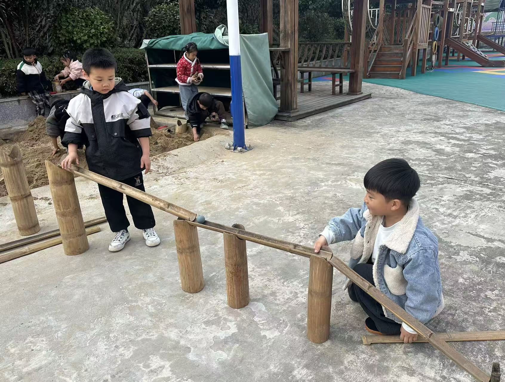 本网讯 12月17日,长塘镇中心幼儿园的沙池变身趣味探索乐园,大二班的孩子们在这里开启了一场充满创意的自主游戏之旅。 “快把竹筒架高一点,小球就能滚得更远啦!”“我们来挖一条长长的隧道吧!”“这里可以堆个小山丘,当作我们的秘密基地!”沙池里回荡着孩子们欢快的呼喊声。大家三五成群,自由结伴,有的合作搭建竹筒轨道,专注地调整角度、稳固支架;有的手持小铲子、小水桶,挖坑、堆沙、引水,忙得不亦乐乎;还有的脑洞大开,用树枝、落叶给沙堡装饰“围墙”,创意十足。 游戏中,老师们退居一旁,化身耐心的观察者与适时的引导者,既保障孩子们的游戏安全,又鼓励他们大胆尝试、自主解决问题。遇到轨道搭建不稳的情况,老师会轻声提问启发思考;看到小伙伴之间产生分歧,老师会引导大家商量讨论,让孩子们在实践中学会合作与分享。 该园园长表示,沙池是幼儿亲近自然、释放天性的绝佳场所。园所将持续打造多元化的户外自主游戏场景,让孩子们在沙水嬉戏、动手探索中感知乐趣、收获成长,真正实现“玩中学、学中乐”。 初审初校:黄三飞 复审复校:胡辉 终审终校:金姣