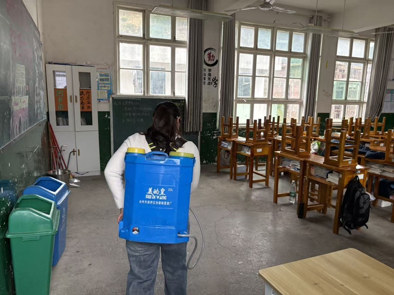 本网讯 12月19日傍晚,南金乡中学校园里少了往日的喧闹,却多了一群忙碌的身影。为切实保障师生健康,应对冬季流感高发期,总务处开展了对教学楼、走廊、卫生间等公共区域展开了一次“无死角”消杀行动,用科学防控筑牢校园安全防线。 消杀人员背负沉重的喷雾设备,从教室的门把手、课桌椅,到楼梯扶手、垃圾桶周边,每一处高频接触区域都接受了清洁。尤其针对隐蔽角落,更是严格遵循“三重保障”流程:深度清洁、立体灭菌、确保病菌无处藏身。 此次消杀不仅注重实效,更兼顾安全与环保。所有消毒剂均采用无害配方,喷洒后不留化学残留,师生周日返校时,扑面而来的将是清新与安心。正如后勤老师所言:“我们像守护城堡的骑士,用细节控的执着,为师生拉起隐形的防护网。” 初校初审:林志武 复校复审:黄佩瑶 终校终审:周容亚