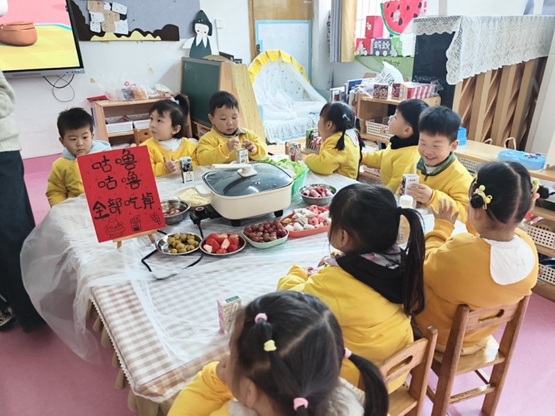 本网讯 12月19日,冬至寒意浓,园内暖融融。东坪镇中心幼儿园萸江园为让幼儿感受传统节气魅力,开展了大、中、小班各展特色,童趣满满的冬至主题活动。 大班宝贝们开启“冬至趣玩户外”混班游戏活动,在奔跑嬉戏中协作闯关,冬日的暖阳下洋溢着阵阵欢笑。中班教室化身创意工坊,“暖冬手作 冬至有味” 主题活动热闹非凡。孩子们搓捏软糯汤圆,串起酸甜冰糖葫芦,亲手熬煮蜜橙橘茶与红枣奶茶,在动手实践中品味冬日香甜。 小班萌娃则变身“小小采购员”与老师及家长志愿者,开展“超市寻味 暖锅团圆”实践活动。孩子们用选购的食材炖煮暖心火锅,围坐分享美食,在热气腾腾中体会团圆的幸福。 初审初校:李锦超 复审复校:温 洁 终审终校:颜群芳