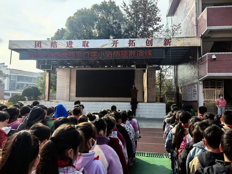 本网讯 12月19日上午,一阵急促的防空警报声在平口完小校园内响起,全校消防安全疏散演练正式启动。仅135秒,1300余名师生有序疏散至操场指定安全区域,顺利完成了一次贴近实战的应急逃生演练。 警报响起,各班学生在班主任及任课教师的组织引导下,用湿毛巾捂住口鼻,弯腰低姿,按照预定的疏散路线,快速、有序地从教学楼撤离。各楼梯口、拐角处的专职值守教师沉着指挥,防止出现拥挤、踩踏现象。疏散过程中,师生们沉着冷静,动作规范,展现了良好的安全素养和协作精神。全体师生安全抵达操场指定集结区域后,各班立即清点人数并上报,确保无一遗漏。 整个疏散过程紧张有序、慌而不乱。安全处主任刘智曦总结时强调:“安全无小事,演练即实战。学校通过常态化开展应急疏散演练,不断强化师生的安全意识和自救能力,是安全工作的重要一环。” 初审初校:刘 巧 复审复校:刘智曦 终审终校:张石平