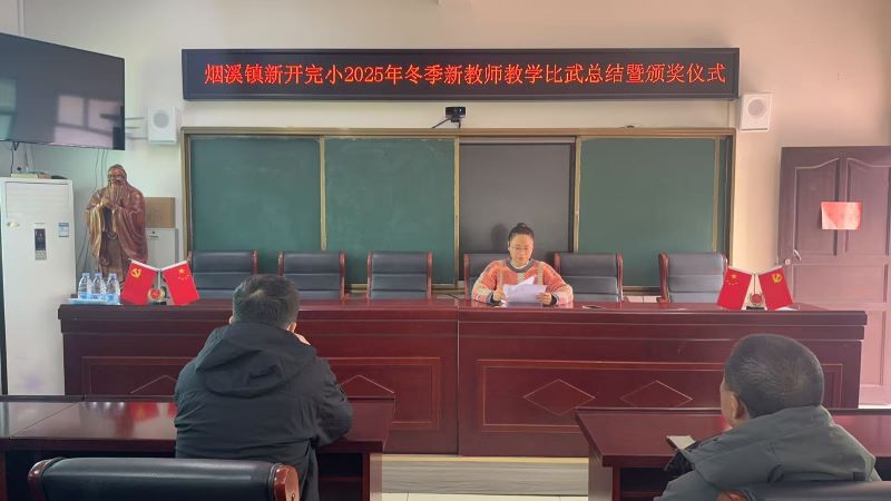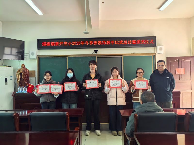 本网讯 12月19日,烟溪镇新开完小举办2025年冬季新进教师教学比武总结暨颁奖仪式。活动以“立足核心素养,构建以‘学’为中心的课堂”为主题,六位新教师逐一登台,展现教学风采。 本次比武涵盖语文、数学、英语三科,参赛教师均围绕“六环节”教学模式展开教学设计,注重学生主体地位,课堂精彩纷呈。陈蓝叶老师执教《两件宝》,童趣盎然;刘益刚老师讲授《7的乘法口诀》,引导自主探究;蒋哲浩老师教学《认识几分之一》,直观清晰;罗思娟老师演绎《雪孩子》,情感充沛;刘盼老师呈现《比尾巴》,生动活泼;姚双老师英语课堂贴近生活,互动自然。六位教师虽风格各异,均展现出良好的专业潜质与教学热情。 经公正评审,刘益刚老师获一等奖,陈蓝叶、罗思娟老师获二等奖,刘盼、姚双、蒋哲浩老师获三等奖。彭巍校长为获奖教师颁奖并寄语鼓励。 初审初校:欧阳娜 复审复校:黄维平 终审终校:彭巍
