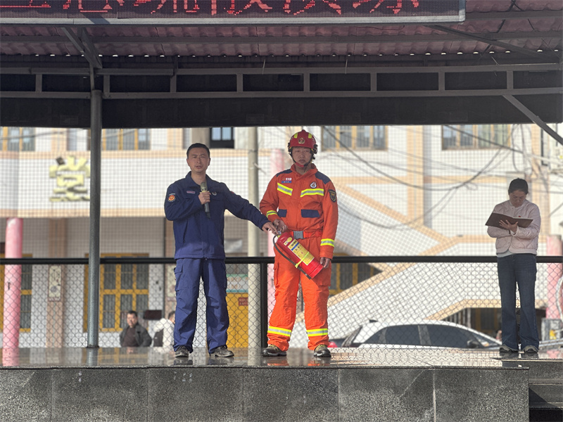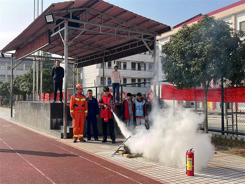 演练中,各班学生在老师的带领下,沿预定疏散路线快速向操场撤离。整个疏散过程紧张而不慌乱,人多而不拥挤。全体师生安全集结后,各班级立即清点人数并逐级上报。该镇消防队队长刘学祁现场讲解并演示了灭火器的正确使用方法,并邀请师生代表进行实操体验,进一步巩固了演练成果。