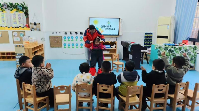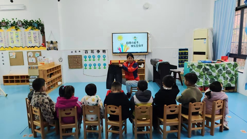 (本网讯)“小裤子,穿穿好,两腿伸进去,一提往上跑!”近日,洞市幼儿园小班的生活课堂上响起了欢快的儿歌,老师们正用趣味教具教孩子们学习穿裤子,让自理能力培养变得生动又有趣。
