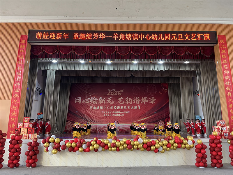 本网讯 12月26日,羊角塘镇中心幼儿园举办了以“萌娃迎新年 童趣绽芳华”为主题的元旦汇演活动,全场500余名师幼及家长欢聚一堂,共赴这场充满童趣的盛会。 活动在园长贺林温暖的新年致辞中拉开帷幕。贺林向辛勤付出的老师们致以诚挚的感谢,向可爱的孩子们送上美好的新年祝福,也向一直以来支持幼儿园工作的家长们表达了衷心的谢意。小班杨知夏妈妈作为家长代表感谢幼儿园的辛勤培育、感谢老师们的谆谆教导和精心呵护,深情的话语感动在场的每一位家长、老师和孩子。 汇演现场热闹非凡,节目形式多样、精彩纷呈。大一班小朋友的开场舞《萌娃闹新春》他们身着鲜艳的舞狮服饰,用欢快的舞步传递着福瑞吉祥;小班萌娃带来的舞蹈《糖果屋里的小老虎》,孩子们跟着音乐晃动着小小的身体,稚嫩的动作萌翻全场;中一班小朋友的情景剧《动物新城》,生动有趣、创意十足,赢得了台下阵阵掌声。还有活力满满的非洲鼓、气势磅礴的武术操、激情四射的时装秀等节目轮番上演,每一个节目都展现出孩子们的天真烂漫与多才多艺。 “我觉得幼儿园这次元旦文艺汇演节目类型非常丰富,感谢幼儿园为孩子们提供了这样一次展示自我的机会,也祝福幼儿园明天会更美好。”小班杨锦瑞爸爸开心地说道。 初审初校:杨 慧 复审复校:贺 林 终审终校:夏赞斌
