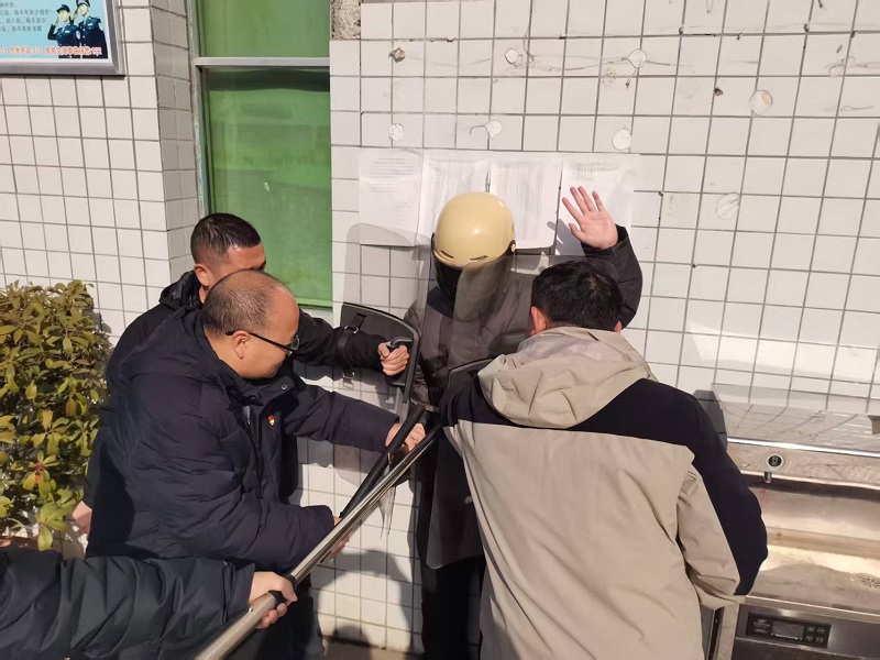 演练前,学校成立专项领导小组,制定详尽方案,通过主题班会、校园广播普及反恐知识及演练流程;安保团队提前开展防暴器械使用培训与协同处置打磨。10时许,演练启动:一名“歹徒”持模拟刀具强闯校门遭阻后翻墙入校,安保人员立即按下一键报警装置并报告应急指挥中心,预案迅速激活。应急小组分工协作:警戒组快速封锁现场设警戒线,疏散组教师组织学生闭窗躲至教室安全角落,处置组持防暴盾牌、钢叉形成战术队形包夹围堵,全程仅3分24秒便成功制服“歹徒”,过程紧张有序、衔接顺畅。