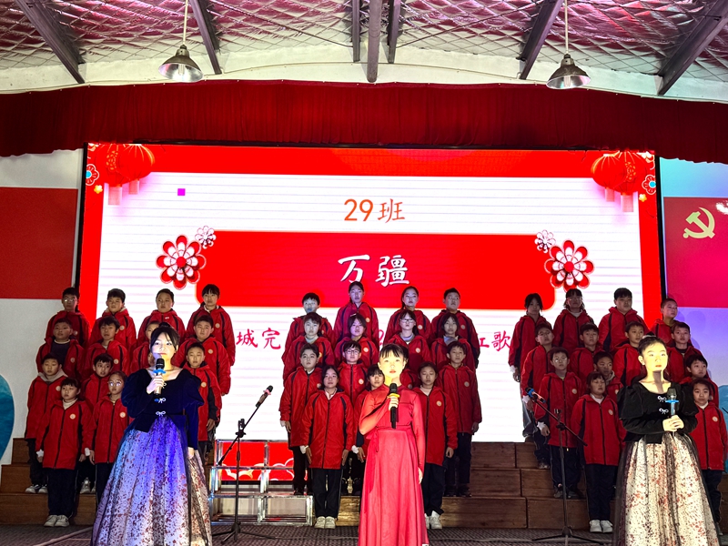 本网讯 寒风奏响了冬日的乐章,阳光温暖了新年的希望。12月26日,梅城镇望城完小举办了以“唱响时代红韵,喜迎元旦新章”为主题的红歌合唱比赛暨庆元旦汇演活动。 首先该校校长周倩为活动致辞。周校长为全体师生送上了诚挚的新年祝福,他希望同学们能发扬团结协作的精神,用真挚的情感,嘹亮的歌声,唱出对祖国的热爱,唱出对美好生活的向往,共同为班级争光,为校园文化生活增添更加绚丽的色彩。 接下来,同学们以班级为单位,积极参与,个个着装整齐,精神饱满。比赛现场,《我们是共产主义接班人》《没有共产党就没有新中国》《祖国祖国我们爱你》《歌唱祖国》《红星闪闪》《我爱你,中国》《如愿》《万疆》《游击队歌》《保卫黄河》等一首首耳熟能详、激昂奋进的经典红歌轮番唱响,那整齐嘹亮的歌声,饱含着孩子们对祖国的热爱与祝福,也展现出了新时代少年的蓬勃朝气和良好精神风貌。 有的班级不仅在歌唱技巧上展现出较高水平,还通过精心编排的队形、动作等,为歌曲增添了别样的魅力;有的班级手持红旗,随着歌声挥舞,营造出一片红海的壮观景象;有的班级则加入了朗诵环节,让红歌的内涵更加丰富生动深入人心。一首首经典红歌,在校园上空久久回荡,让整个现场沉浸在红色的海洋中,接受着爱国主义的精神洗礼。 比赛评委由学校该项校领导和老师组成,他们秉持着公平、公正、公开的原则,从演唱技巧、舞台表现、团队协作等多个维度进行严谨打分。经过激烈角逐,最终评选出一、二等奖节目,并进行了颁奖活动。 此次红歌合唱比赛,不仅为同学们提供了一个展示自我的舞台,在欢乐的氛围中让红色文化深入人心,让爱国情怀厚植在每一位同学心间,为校园增添了浓浓的节日气息,也为新年注入了红色活力,激励着全体师生在新的一年里,以更加昂扬的姿态奋进新征程,书写新篇章。 初审初校:李咏如 复审复校:郭世佳 终审终校:周倩