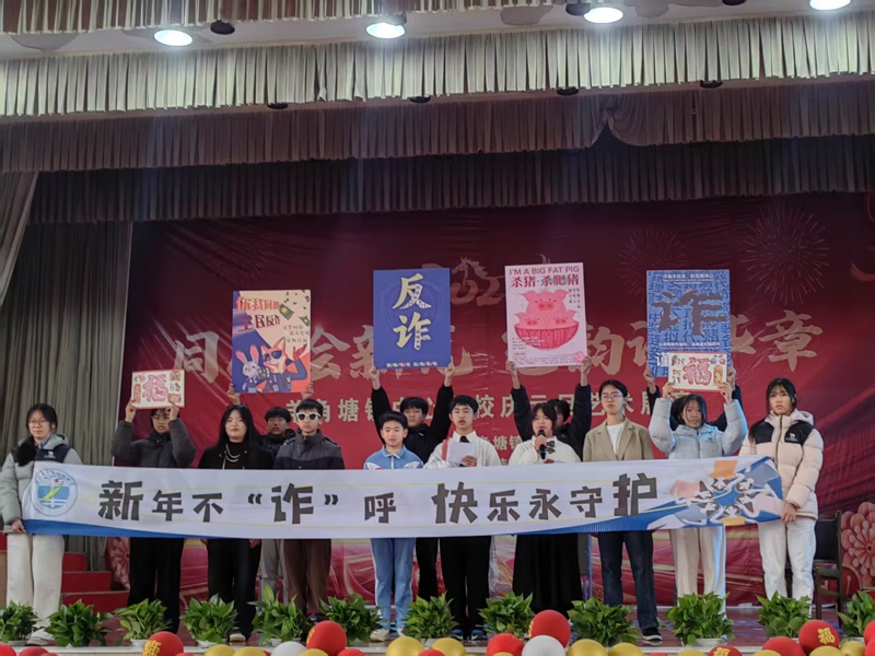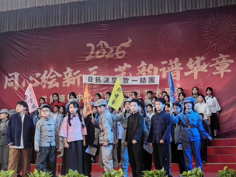 本网讯 庆元旦,迎新年;展才艺,扬风采。12月30日上午,羊角塘镇中心学校第二届师生艺术节在镇中学大礼堂成功举行,全镇6所中小学校及幼儿园的500余名师生齐聚一堂,以艺术之名共贺新年,尽显校园文化活力。 活动伊始,该中心校总支书记、校长王云德致新年贺词。他向全体师生送上新年祝福,并号召全体教师继续高举“五育并举”教育旗帜,深耕艺术教育沃土,让艺术之花在校园常开常艳,引领学生在真善美的滋养中,成长为有理想、有本领、有担当的时代新人。 本次艺术节分为作品展览与节目表演两大板块,全方位展现师生的艺术才华。展览区集中展示了绘画、书法、剪纸等各类优秀作品,38件获奖作品被精心制作成四块展板,在镇中学醒目位置展出。色彩绚丽的绘画、笔力遒劲的书法、构思精巧的剪纸,每一件作品都饱含师生的创意与心血,吸引了无数师生驻足观赏、细细品味,大家纷纷对这些兼具观赏性与思想性的作品啧啧称赞。 舞台表演环节更是精彩纷呈,舞蹈、情景剧、经典诵读等17个节目轮番登场,高潮迭起。中心幼儿园小朋友带来的舞蹈《小梦娃》,以活泼灵动的舞姿、喜庆欢快的旋律,正式拉开艺术展演的序幕,瞬间点燃全场氛围;文昌阁学校的经典诵读《一束光》,通过深情演绎带领孩子们重温革命岁月,激荡起浓浓的赤子情怀,让红色精神在校园里传承;镇中学师生自编自导的情景剧《诈诈呼呼》,聚焦电信诈骗热点问题,以生动诙谐的表演揭露诈骗套路,兼具观赏性与现实教育意义,引发全场师生的强烈共鸣……其余节目更是各有特色,或柔美温婉,或激昂奋进,赢得台下阵阵掌声与欢呼声。 据了解,为保证评选公平公正,活动邀请专业评委对各类作品和节目进行严格评审。最终,共评选出一等奖19个,二等奖21个,三等奖14个;黎娟、蒋飘、蒋平、夏雪琪、张先觉、李超荣、朱德芬等19位老师被评为优秀导演或优秀指导老师。 初审初校:李颖慧 复审复校:夏赞斌 终审终校:王云德