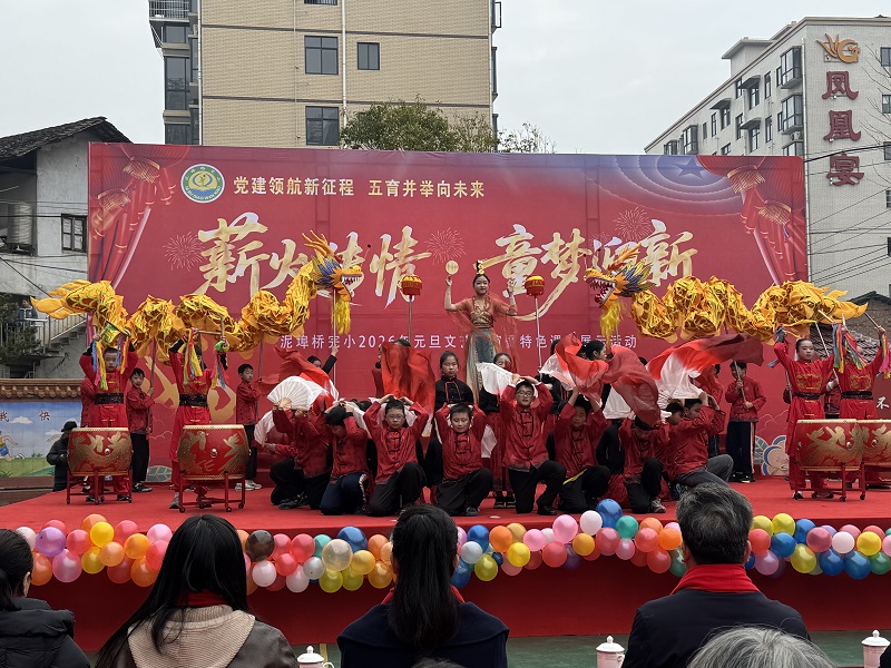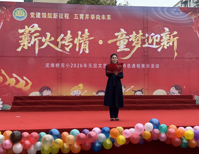 本网讯 12月30日上午,泥埠桥完小举行“薪火传情 童梦迎新”为主题的庆元旦暨特色课程展示活动。东坪镇中心学校领导、泥埠桥社区领导、该校退休教师参加了此次活动。 活动伊始,主持人介绍到场嘉宾,学生代表为嘉宾敬献红围巾,现场暖意融融。党支部书记、校长林美花致欢迎辞,感谢各界对学校发展的支持,回顾特色课程建设成果,展望新年发展蓝图。随着六年级2001班鼓扇齐鸣的《龙腾盛世》表演活动正式拉开帷幕。同学们精神抖擞,鼓点铿锵、扇影飞扬,充分展现少年朝气,赢得阵阵掌声。活动形式丰富,涵盖舞蹈、经典诵读、合唱、情景剧等,12个班级依次登台。孩子们身着整齐服装,以饱满热情演绎各类节目,既展现了中华传统文化魅力,也彰显了新时代少年风貌,充分体现学校特色课程建设成效。教师、家长及退休教师代表也登台献艺。 该校负责人表示,此次活动既是特色教育成果的集中检阅,也是家校社协同育人的生动实践。学校将以此为契机,深耕特色课程,凝聚育人合力,为学生搭建成长平台,让教育薪火代代相传。