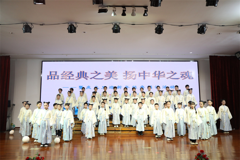 本网讯 12月30日,安化县第一芙蓉学校“品经典之美,扬中华之魂 ”暨庆元旦迎新年经典诵读活动在冬日暖阳中拉开帷幕。三年级11个班级的学生齐聚芙蓉讲坛,以饱满的热情诵读经典,传承中华优秀传统文化。 活动现场,学生们着装整齐,精神饱满。《满江红》《春江花月夜》《登黄鹤楼》等经典篇目接连上演,稚嫩而坚定的童声回荡在校园上空。各班精心编排的节目,不仅展现了经典文学的艺术魅力,更传递出中华文化的深厚底蕴。 活动中,各班不仅在内容选择上贴合主题,在表现形式上也颇具创意,有的班级将诵读与舞蹈、音乐相结合;有的通过情景剧形式演绎经典;还有的则将道具与表演有机融合,赢得现场师生阵阵掌声。 本次比赛采用多维度评分体系,评委们从作品内容、节目形式、语言技巧、舞台表现等多个方面对各班表现进行综合评分。经过激烈角逐,最终评选出特等奖2名、一等奖4名、二等奖5名。 该校相关负责人在活动中表示,“经典诵读是我校‘书香校园’建设的重要一环。我们将继续开展形式多样的传统文化教育活动,让经典融入日常教学,让文化传承成为自然,培养既有现代素养又具传统美德的新时代芙蓉好少年。”(通讯员:万扬) 初审初校:万扬 复审复校:蒋国庆 终审终校:蒋军