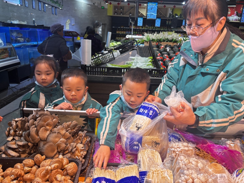 进入超市,孩子们在教师与家长志愿者的引导下分组行动,手持购物清单的他们瞬间变身“小当家”,穿梭于各式货架之间。有的对照清单仔细搜寻对应商品,有的认真查看商品价格标签,还有的主动向售货员询问商品摆放位置。孩子们彼此商量探讨、比对商品价格,慢慢习得理性消费的小技巧,满满的成就感洋溢在一张张稚嫩的笑脸上。大班龙惊奇小朋友兴奋分享购物心得:“我学会了看价格牌、还要买健康的食品!”