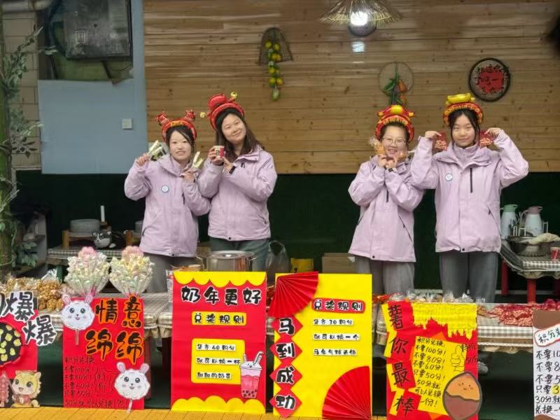 律动表演结束后,亲子游园环节正式开启。幼儿园操场及各班活动室设置了“策马奔腾”“打年兽”等趣味闯关游戏,还有积分兑换区摆满了奶茶、零食等小礼品,老师们头戴新年装饰,热情地为孩子们讲解兑换规则,孩子们拿着积分卡穿梭在各个关卡,完成挑战后兑换礼品的瞬间,脸上满是喜悦与成就感。此外,园内还设置了纳福手工创作区和“马到成功”主题打卡点,亲子携手制作福字挂件、灯笼,用相机定格温馨瞬间,一件件充满创意的手工作品、一张张幸福的合影,都成了此次活动的美好纪念。