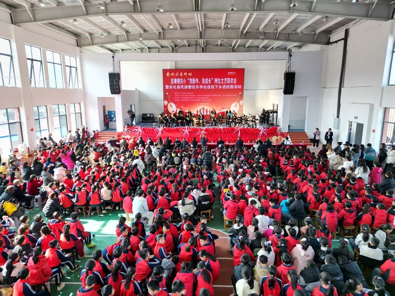 本网讯 1月10日下午,“艺术点亮乡村——龙塘镇完小‘贺新年、促成长’师生文艺联欢会暨安化县民族管弦乐学会送戏下乡进校园”活动在新校区风雨球场举行。
