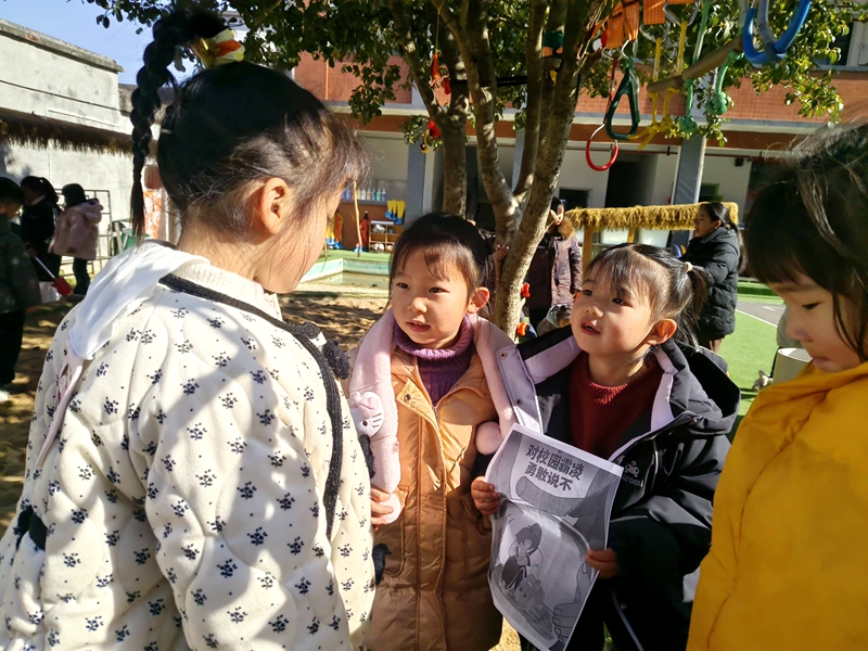 本网讯 近日,江南镇中心幼儿园开展预防校园欺凌主题宣讲活动,大一班“安全小宣讲员”走进小班传递安全知识。 活动前,大一班教师通过绘本、情景模拟,帮助孩子们厘清抢夺玩具、恶意嘲笑等欺凌行为,指导他们掌握“大声拒绝”“及时求助”的自护方法。孩子们还准备了童趣道具和宣讲脚本,化身小使者开启宣讲。 现场,小宣讲员们通过情景表演、口诀诵读,生动示范应对欺凌的正确做法,还带领小班弟弟妹妹玩“欺凌行为小侦探”游戏。稚嫩的话语、有趣的互动,让小班幼儿轻松学会识别不友好行为,树立勇敢说不的意识。 此次活动以“大手拉小手”的形式,让安全教育更具实效,为孩子们营造了友爱和谐的成长氛围。(通讯员 王海梅) 初审初校:王海梅 复审复校:谢庆 终审终校:廖迎亚