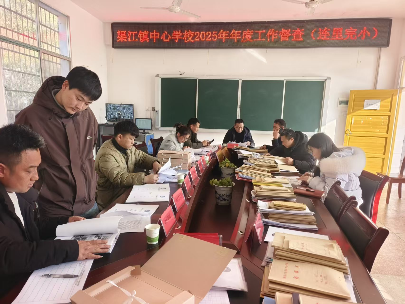 本网讯 “菜要炒好吃点,质量一定要保证。”“备课要多花点心思,提升课堂效率。”1月13日,渠江镇中心学校校长刘跃兵在连里完小走访时,与食堂工作人员和教师深入交流,详细了解日常工作落实情况,并着重强调质量要求。当日,由中心学校督导室牵头组织的期末工作督查正式展开。 督查组采取查阅资料、实地查看、民主测评及个别谈话相结合的方式,对学校食堂管理、校园安全、德育工作、教学常规等方面进行了全面检查。期间,督查人员认真查阅教师教案、作业批改与听课记录等教学材料,组织对行政班子成员开展满意度测评,并与一线教师进行面对面交流,全面掌握学校管理及教学实施情况。