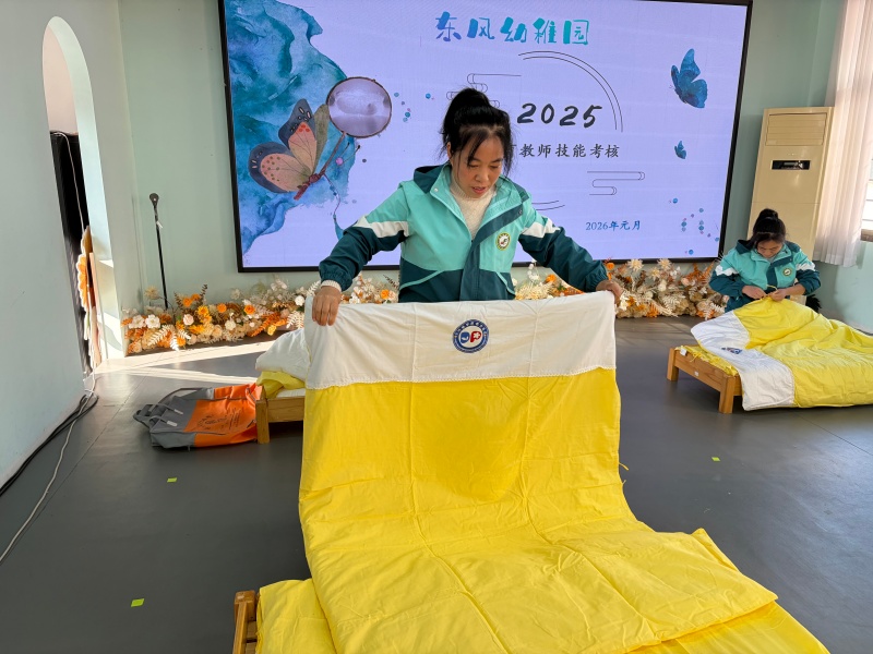 本网讯 1月14日,为全面提升保育员的专业素养和实操能力,筑牢幼儿园保育工作防线,东风幼稚园开展了保育员保育知识笔试与叠被子、整理床铺技能比赛活动。 本次活动分为理论笔试与技能实操两大环节。在保育知识笔试现场,保育员们全神贯注、奋笔疾书,试卷内容涵盖幼儿卫生保健、常见疾病预防、意外伤害应急处理、生活护理规范等核心知识点,全面检验了保育员对理论知识的掌握程度与应用能力。 技能实操环节聚焦叠被子、整理床铺,随着比赛哨声响起,保育员们迅速投入状态。抖被、铺平、对折、压线,一系列动作行云流水,手法娴熟利落;整理床单时,她们仔细拉拽边角,抚平每一处褶皱,力求床铺平整美观、棱角分明。评委组依据操作规范性、床铺整洁度、完成速度等标准,进行公平公正的现场打分。 最终,经过理论与实操的双重考核,活动评选出一、二等奖。获奖保育员手持荣誉证书,脸上洋溢着自豪的笑容。大家纷纷表示,此次比赛既是一次技能的“大练兵”,也是一次经验的“大交流”,今后将把所学所练运用到日常工作中,以更专业的能力守护幼儿成长。 此次活动,以“笔试+实操”的双重考核方式,以赛促学、以赛促练,有效夯实了保育员的业务基础,为幼儿园保育工作的精细化、规范化开展奠定了坚实基础。 初审初校:王立霞 复审复校:刘海英 终审终校:刘 娴